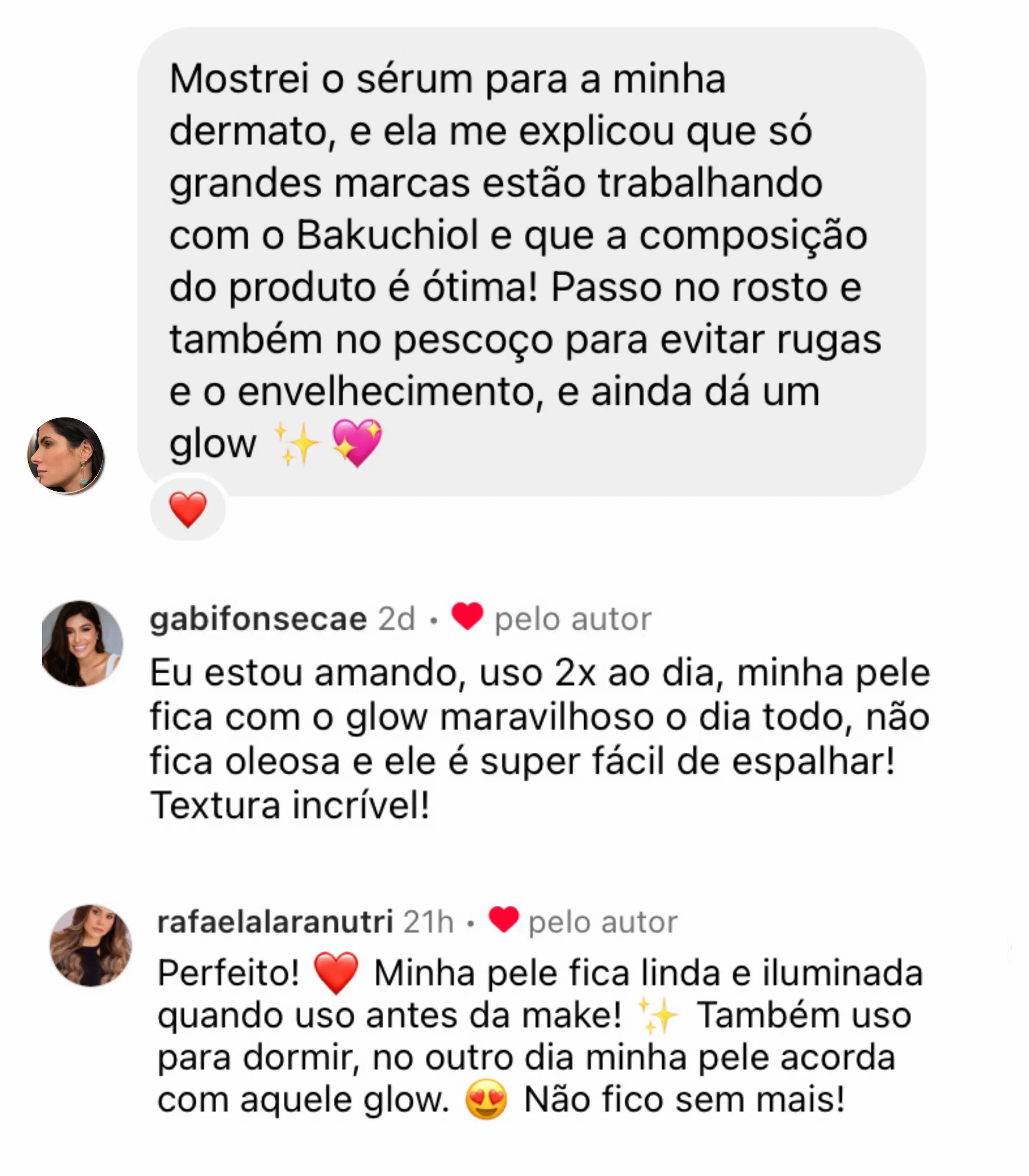 🔬 Ciência e Inovação: Com estudos avançados, o bakuchiol mostrou resultados surpreendentes! Ele é um antioxidante poderoso, capaz de estimular a produção de colágeno, reduzir linhas finas e uniformizar a pele, tudo sem causar irritação, descamação ou sensibilidade ao sol. Resultado? Uma pele mais jovem, radiante e protegida com segurança!